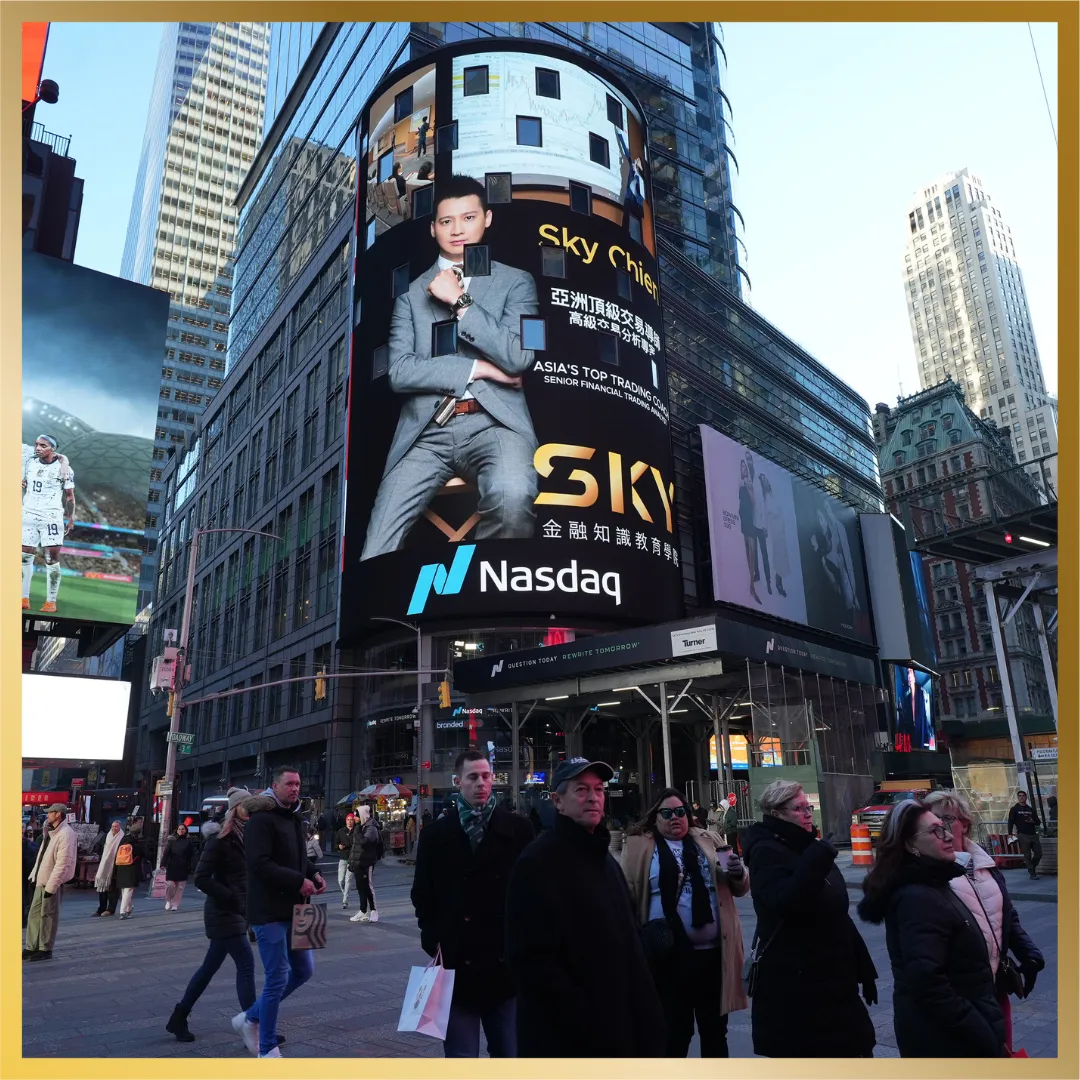 并在2023年成为第一位登上New York Times Square Nasdaq billboard的台湾人,巩固了亚洲金融教育工作者在未来全球金融方面的地位。
